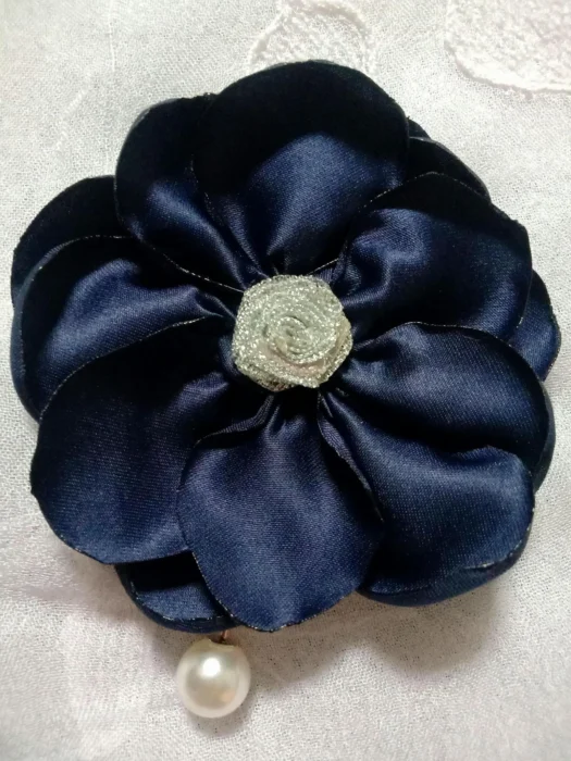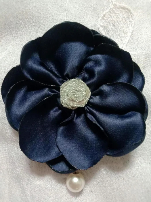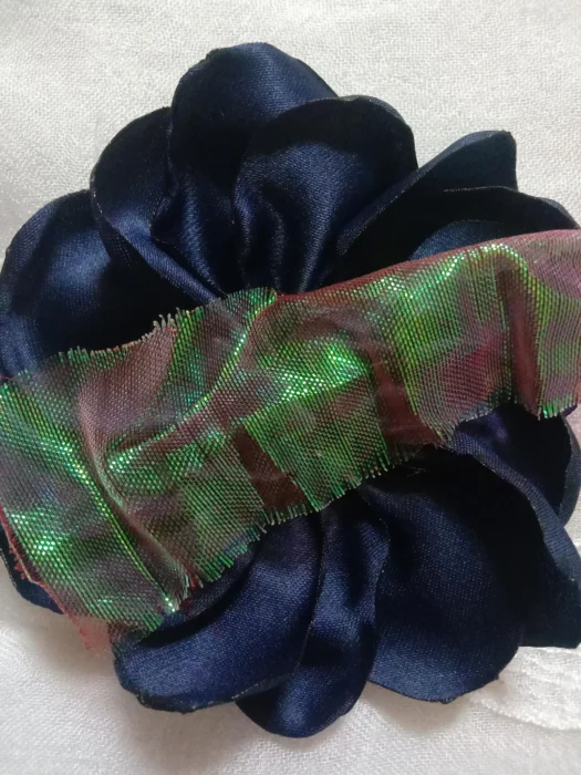 Der Artikel ist aus Satin gefertigt, mit einzelnen Blütenblättern, die einzeln für ein ästhetisch ansprechendes Design von Hand gefertigt werden.