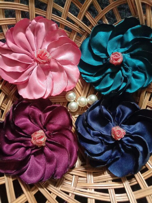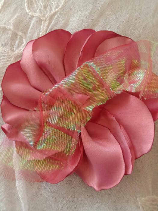 Der Artikel ist aus Satin gefertigt, mit einzelnen Blütenblättern, die einzeln für ein ästhetisch ansprechendes Design von Hand gefertigt werden.
