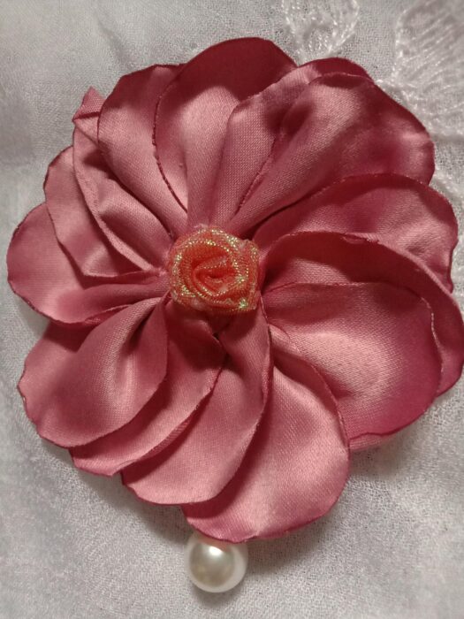 Handgefertigte Rose Gold Satin Blumen Brosche (R20)