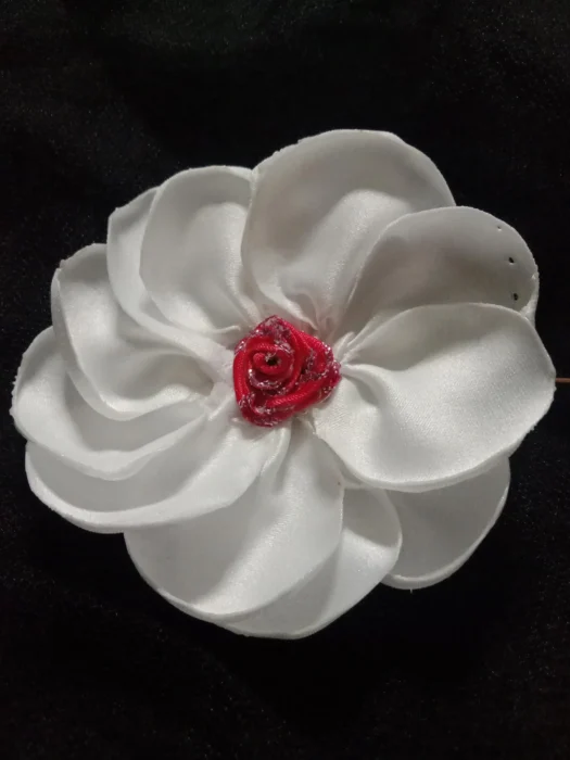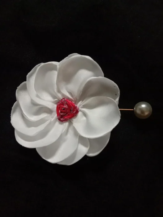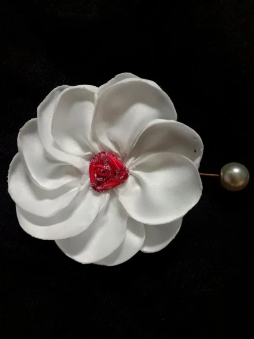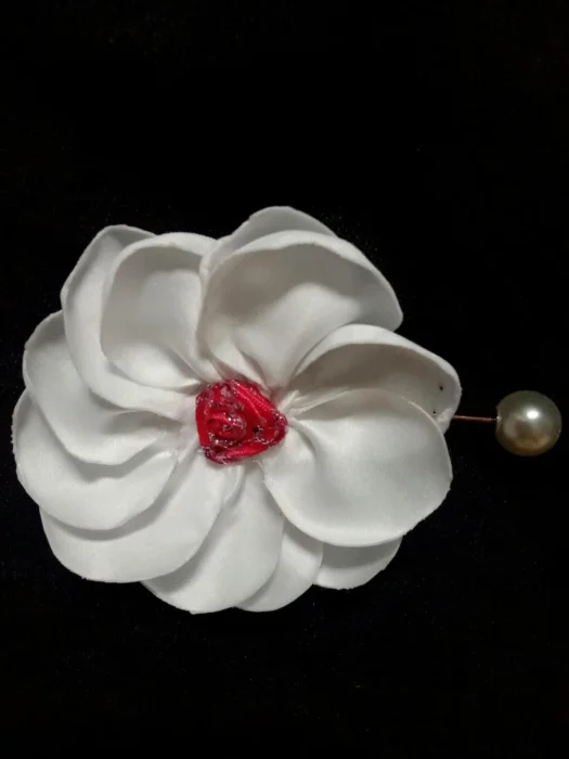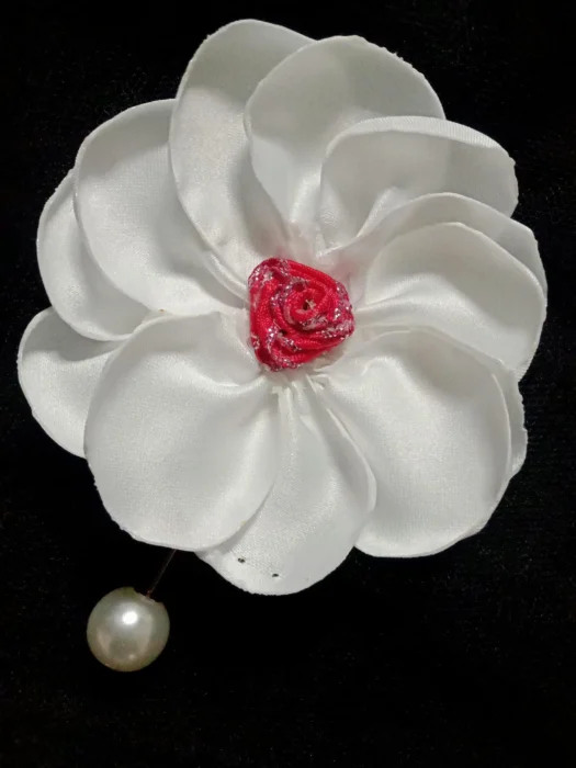 Handgefertigte Weiße Satin Brosche: Stoff-Corsage (R13)