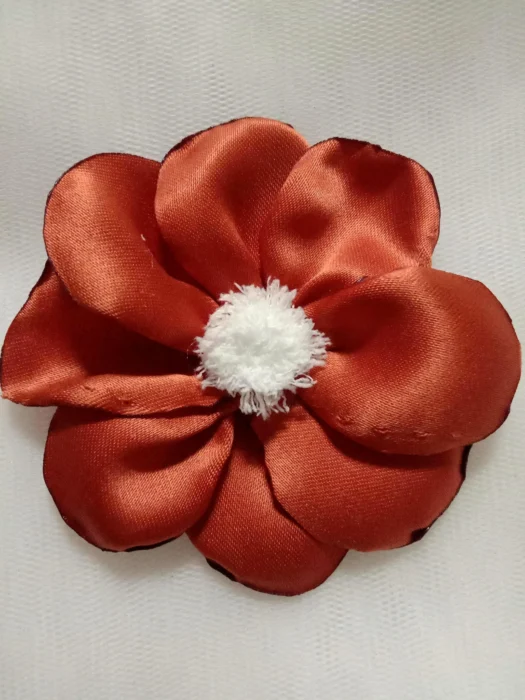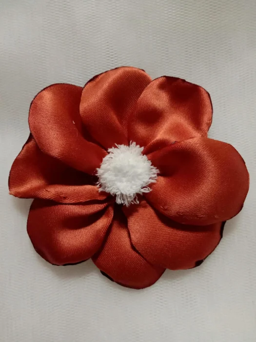 Der Artikel ist aus Satin gefertigt, mit einzelnen Blütenblättern, die einzeln für ein ästhetisch ansprechendes Design von Hand gefertigt werden.