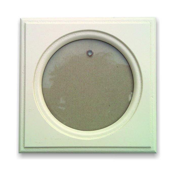 Der kleine Rahmen besteht aus MDF ist in weiß lackiert und hat auf der Rückseite eine Aussparung für ein quadratisches Foto in der Größe von 9,3 cm. Der sichtbare runde Ausschnitt hat einen Durchmesser von 8,2 cm. Das Rähmchen wird komplett mit Glas und Rückwand geliefert.