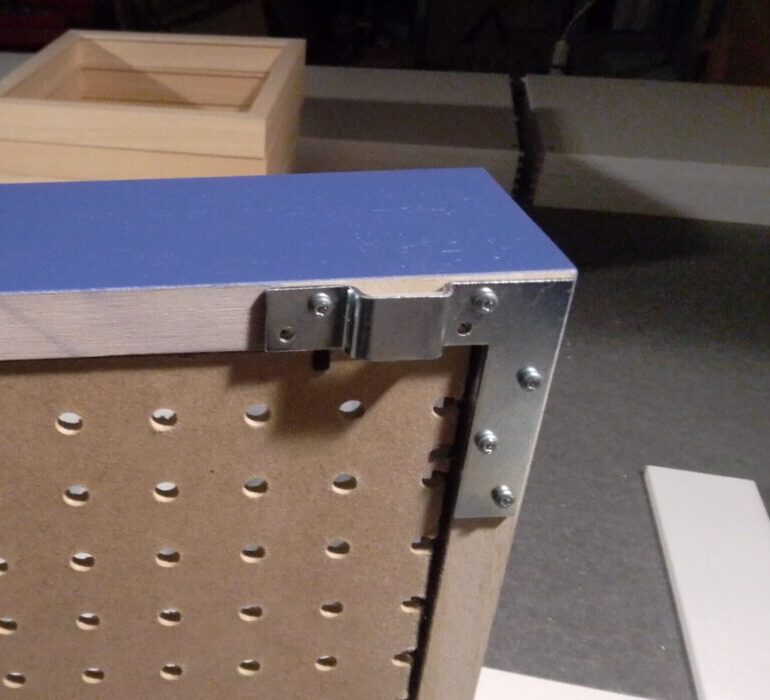 Rückwand, MDF, 3mm – kann mit einem farbigem Passepartoutkarton als Hintergrund verdeckt werden