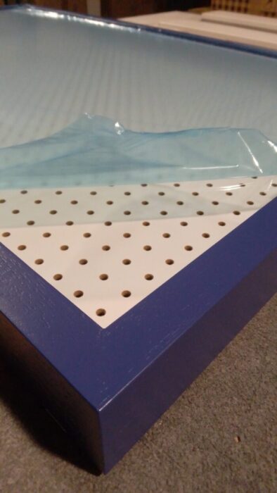 Vier Abstandsleisten in der Höhe von 50 mm, welche Glas und Rückwand auf Abstand halten (entspricht der Füllhöhe)